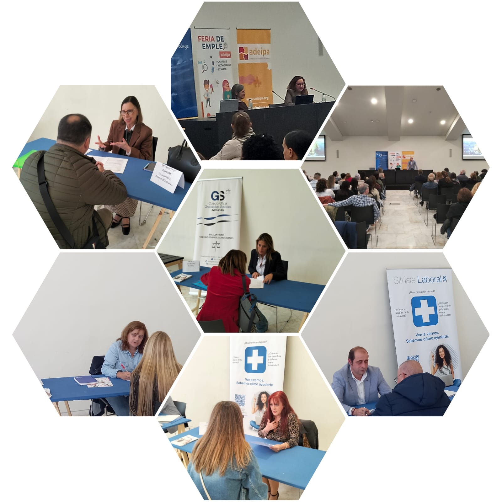 El día 4 de noviembre tuvo lugar en el Palacio de Exposiciones y Congresos de Oviedo la III Feria de Empleo de ADEIPA, a la que acudieron más de medio millar de personas en búsqueda de empleo. Se trata de una actividad que desarrollamos con el apoyo del Ayuntamiento de Oviedo y de la Consejería de Derechos Sociales y Bienestar del Principado de Asturias. Buscamos la generación de oportunidades de empleo para personas vulnerables, así como promover el acercamiento y la colaboración entre las empresas de inserción asturianas y otras empresas del tejido empresarial de la región.
